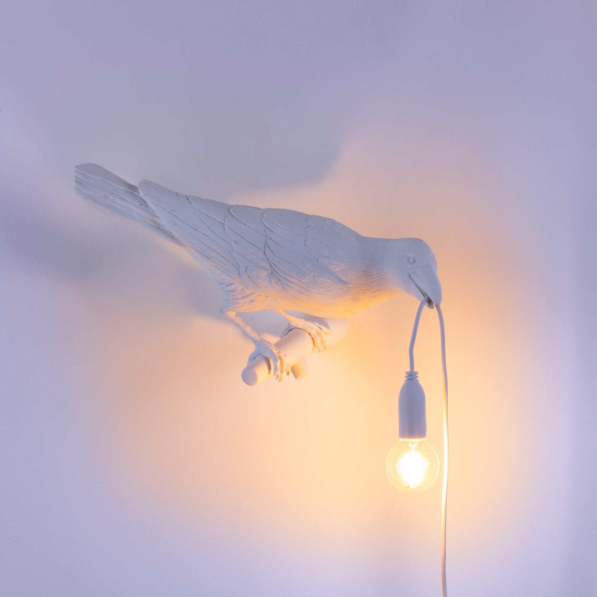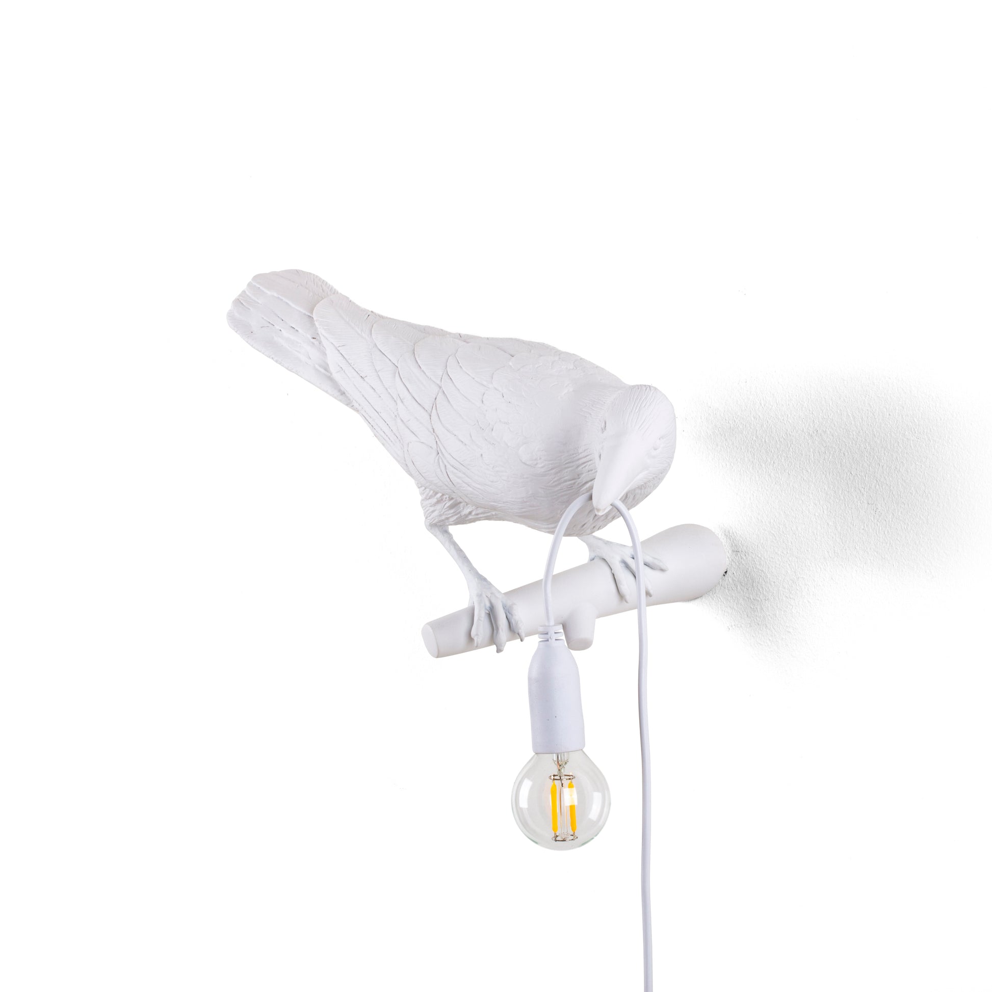 Bird Lamp White Looking Right OUTDOOR