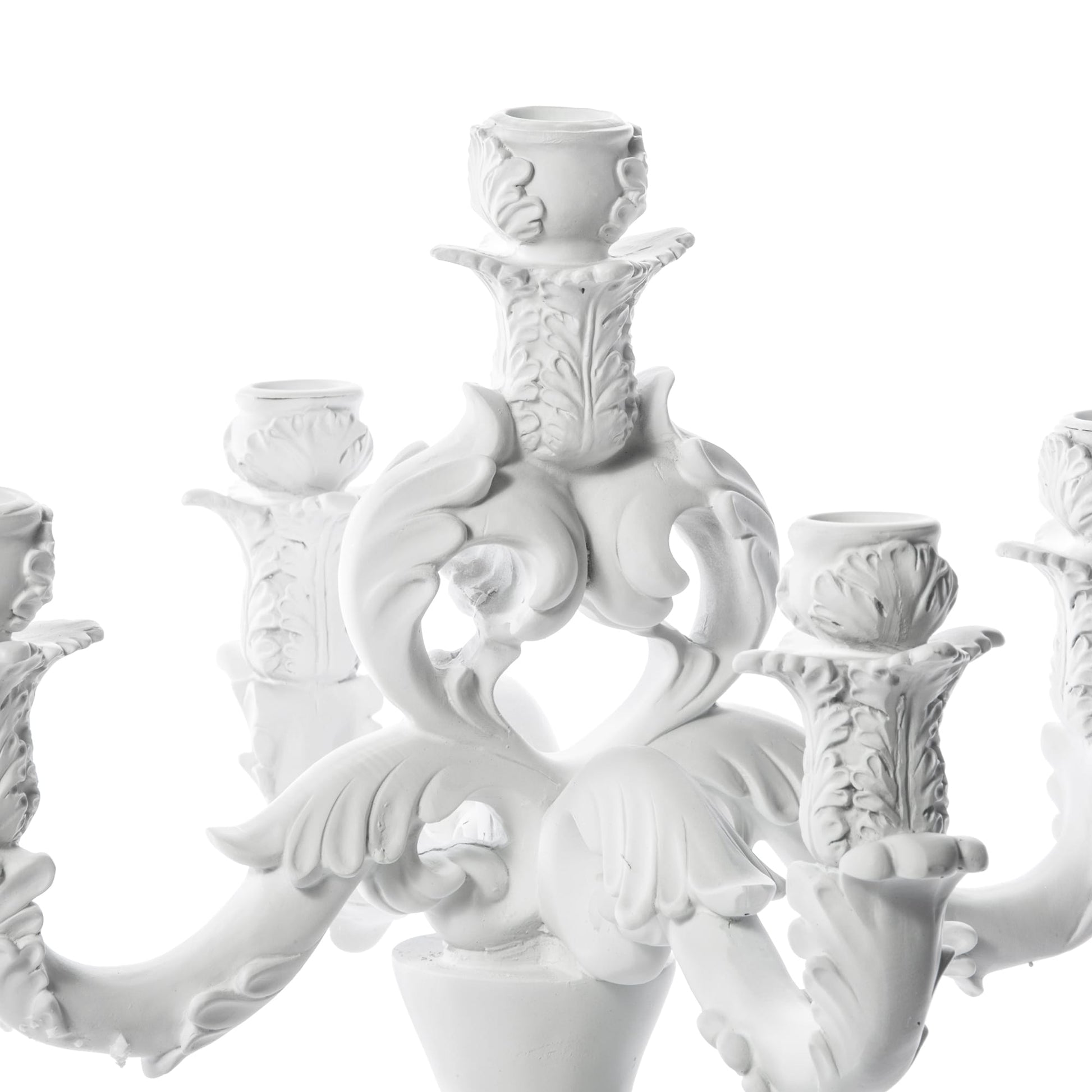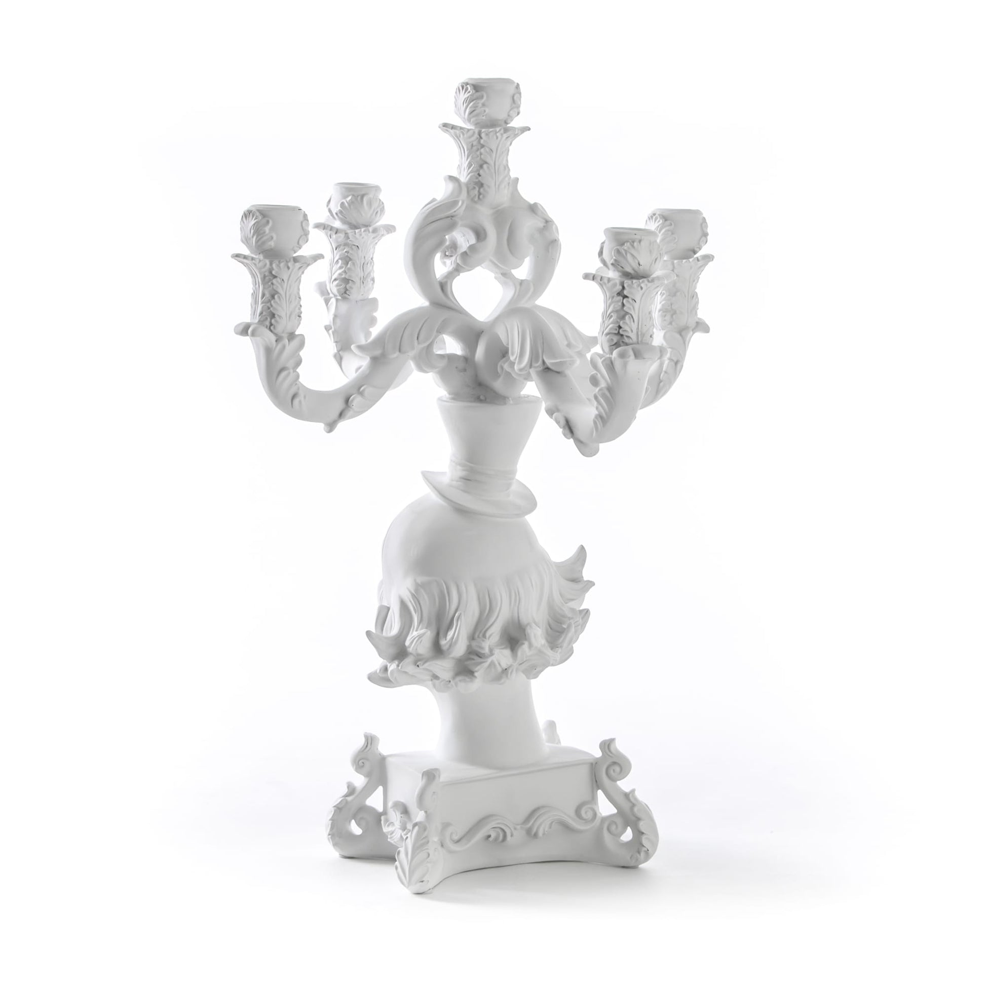 Baroque black and white candelabras. An eclectic style for candle-lit, unexpected dinner.