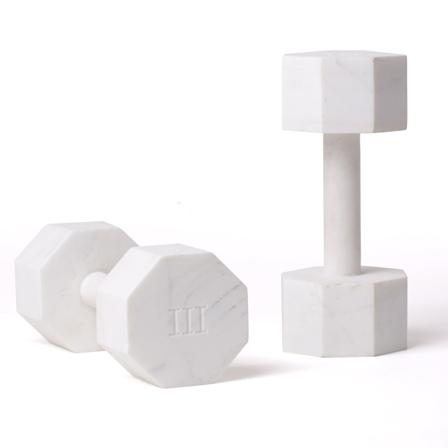It is a series of marble fitness equipment inspired by the games of ancient Rome. The Roman numbering, indicating the weight on the tools, is engraved like the historical inscriptions. The reference to the groove of the Doric columns in the octagonal geometry of the handlebars are a further reference to the style of the Hellenic era.